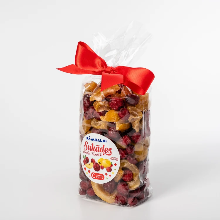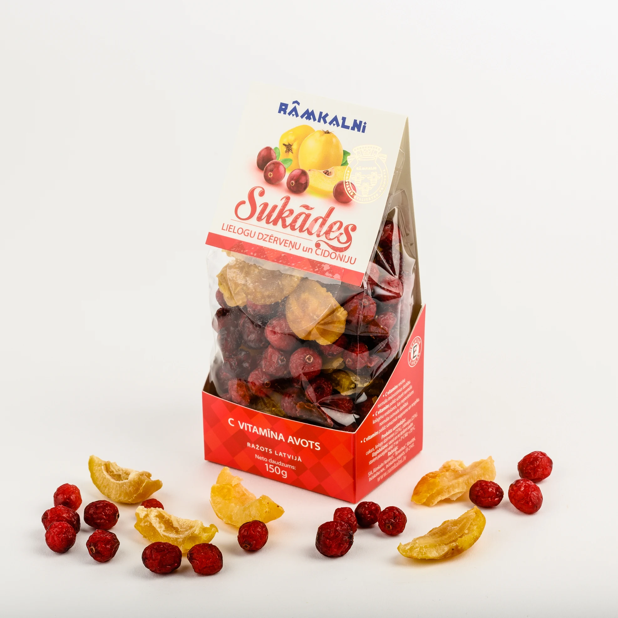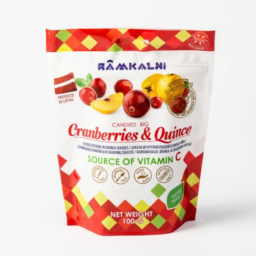 • Ingredients: Cranberry candied 50% (cranberries 50%, sugar), Quince candied 50% (cranberries, quince).