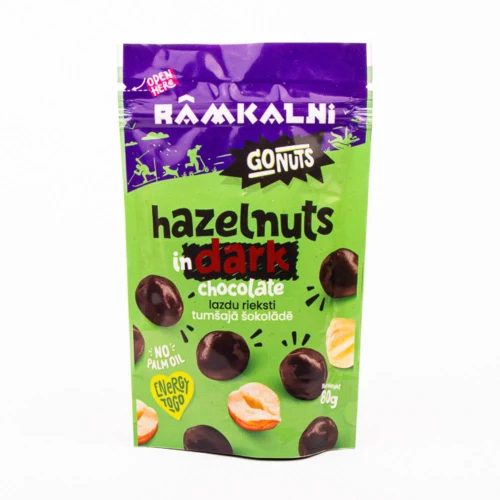 Hazelnuts in dark chocolate 80g (dark chocolate 51% (cocoa mass, sugar, cocoa butter, flavouring-natural vanilla), roasted)