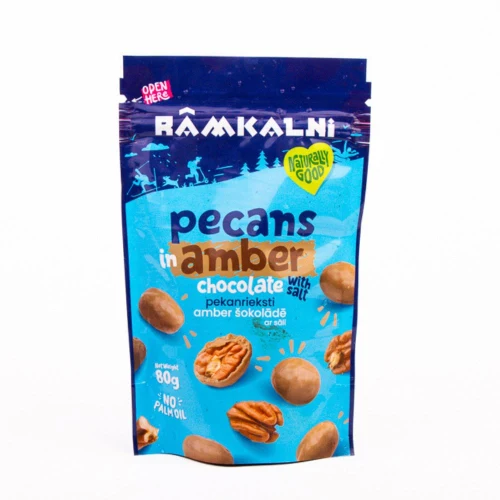 Pecans in amber chocolate with salt 80g (white chocolate 62% (sugar, cocoa butter,
