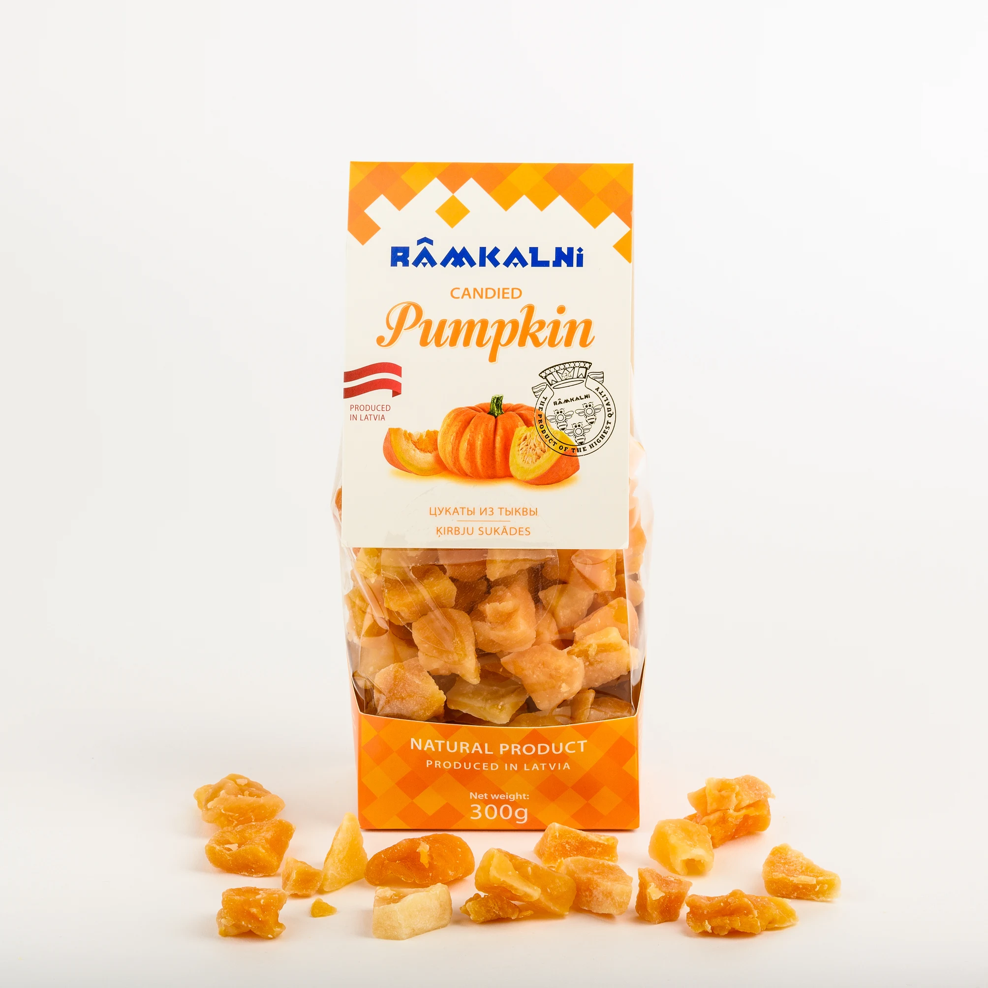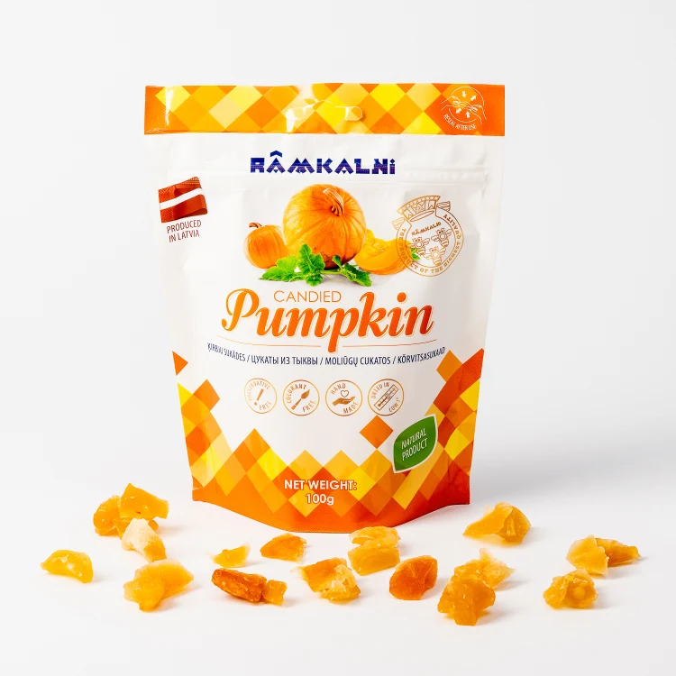 • A healthy and tasty snack made with juicy pumpkin. The candied fruit retains the natural pumpkin flavour and slightly sweet aroma, making it a great choice for both everyday and festive occasions. Ideal for those who appreciate natural and quality treats.