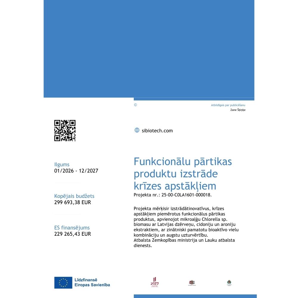 “Krīzes apstākļiem piemērotu funkcionālu pārtikas produktu izstrāde, izmantojot inovatīvas mikroaļģu Chlorella sp. biomasas un Latvijas augļogu ekstraktu kombinācijas”